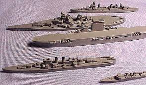 Bearing in mind that I shall be using my Hexon terrain I really want models that are larger but not excessively so. Using 1/1200th models would not really be an option as most of the larger classes of ship will be larger than the 4 inches across a tile. My current thinking is to use 1/2400th models as a good compromise between tabletop size and practicality. There are a number of manufacturers of metal models in this scale but for my purposes I am looking quite seriously at the huge range of resin offerings from Panzerschiffe in the US - Panzerschiffe.